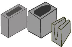 | Blocos de concreto: Vedação estrutural e caneleta | Meio bloco (1/2): Vedação estrutural e caneleta |